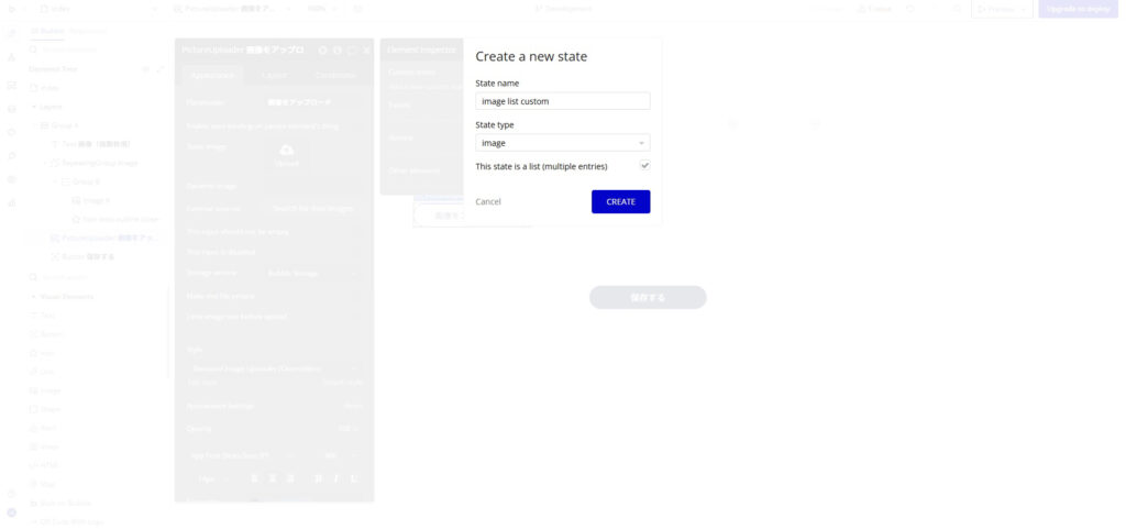 今回は、Bubbleの「Custom state」を使って複数枚の画像のアップロード機能の実装を行いました。
