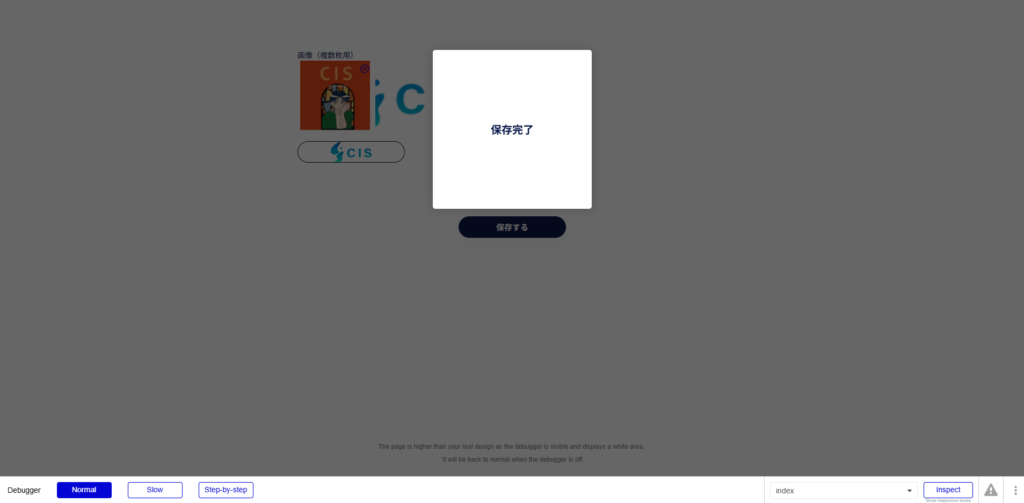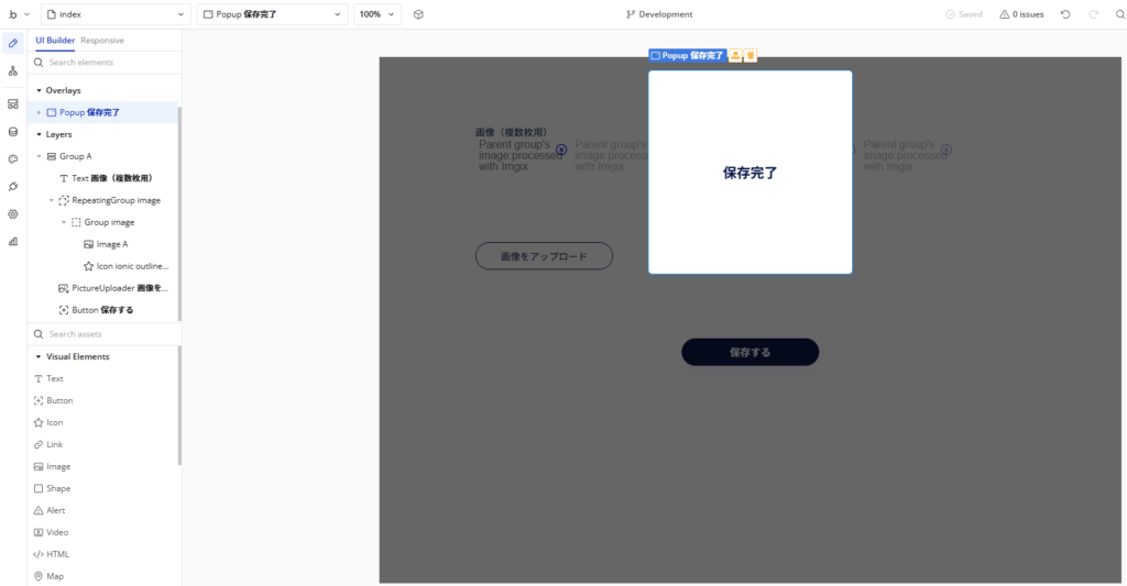 保存Buttonを押したら出てくる「POPUP」も作成しておきます。